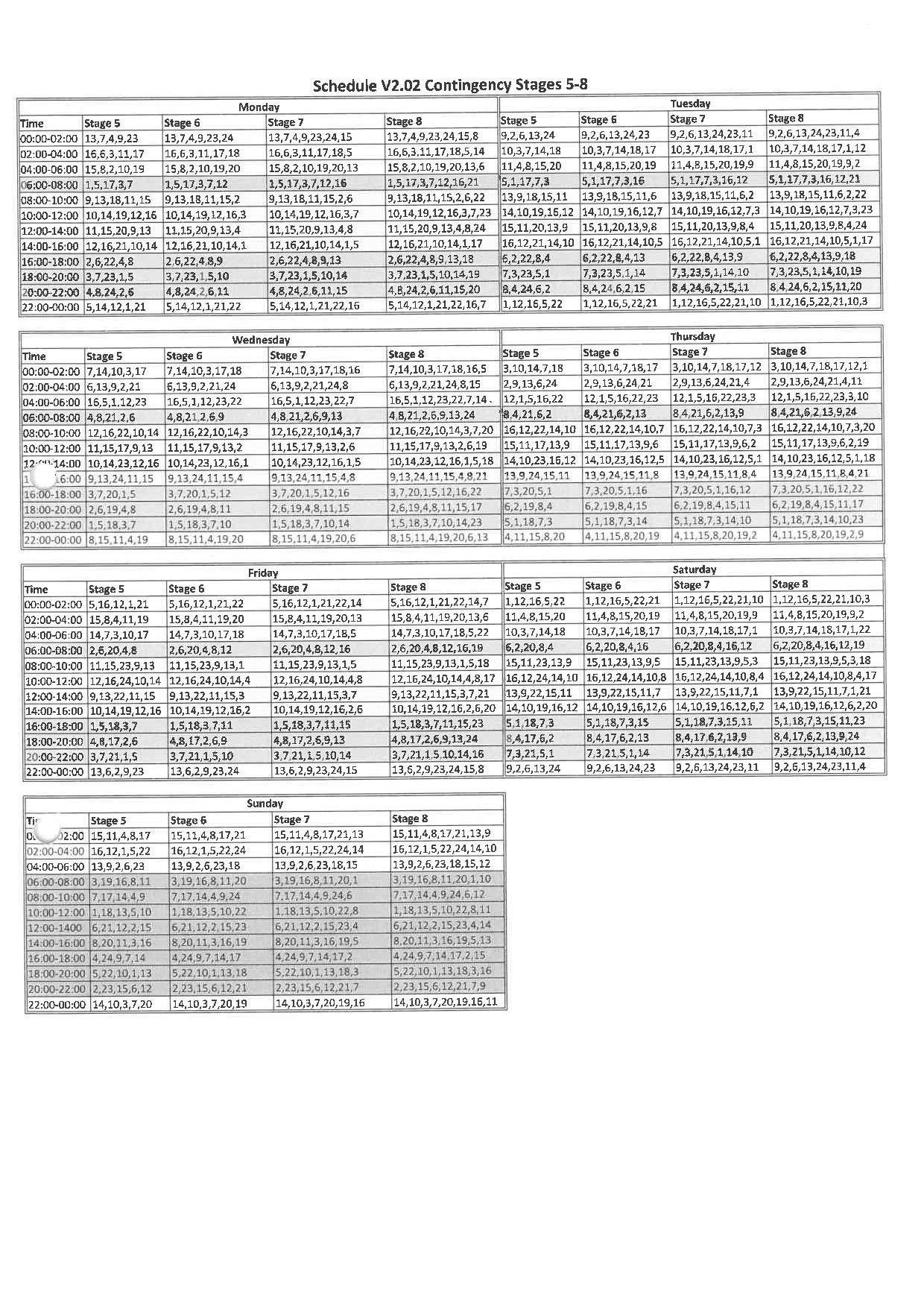 This is a monthly time table for load shedding.